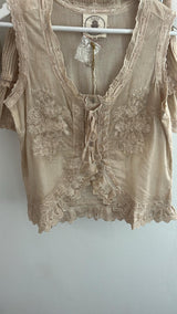 Unleash your feminine side with the Cannes Top. Its ultra-feminine and whimsical design features lace inserts and delicate floral embroidery, while the scalloped accentuating adds a charming touch. Hints of ribbons provide an added enchantment.  Perfectly pleasing to both the eye and touch, this top is an essential addition to your wardrobe.  The perfect companion to the Coquette skort.