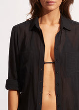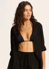 This lightweight beach shirt in black is a perfect addition for your summer wardrobe. Wear over your swimwear to go to lunch or pair with the matching Seafolly Crinkle Beach Pant and sandals for a city visit.