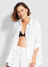 A classic! This fabulous white beach shirt is a perfect addition for your summer wardrobe. Wear over your swimwear to go to lunch or pair with denim shorts and sandals for a city visit.