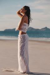 Designed for effortless packing, versatile styling, and layering over your swim for an elevated resort look. The Sea Level Shore Linen Cami features lace side panels.
