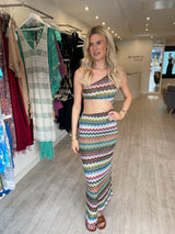 Missoni One Shoulder Cut Out Maxi Dress in Zig Zag Lurex Dark