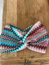 Zigzag knit enlivened by the waving pattern for the viscose headband. A refined accessory to add a Missoni touch to any look.