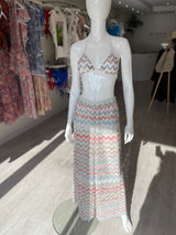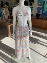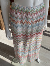 Wide and luxuriant with a pleat at the front and the back, the viscose blend women’s cover up trousers are embellished with a 3D zigzag pattern which captures the light with elegance and depth. Embellished with lurex threads, these trousers are practical thanks to the elasticated waistband.