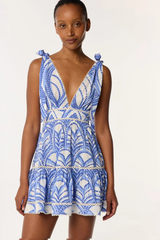 The mini dress Cara stands out for its femininity and the richness of its details.