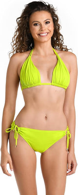 La Blanca Island Goddess Halter Triangle with Tie Side Loop Brief Bikini Set (neon) Bright Lime