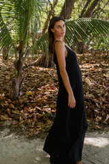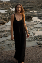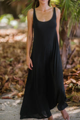 Super easy soft jersey maxi dress with deeply scooped neck and sparkle trim that skims in all the right places.