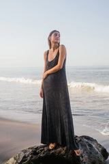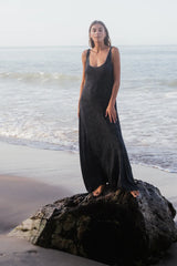An elegant summer dress that can be worn to breakfast or in the evening. This stunning super easy soft jersey maxi dress skims in all the right places, it features a deeply scooped neck and sparkle trim on the neckline and straps. Designed and produced in London and made with bespoke Italian fabrics.