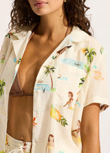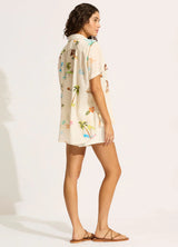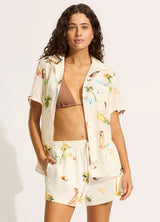 Seafolly Isla Palm Short Sleeve Shirt in Ecru