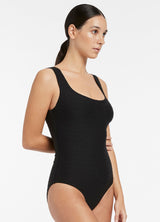 The Rio Scoop Neck One Piece is crafted from a wave inspired soft-to-touch fabrication. The wide straps, low scoop open back and hidden underwire provides an elevated one piece silhouette providing support and comfort for C-D cups.