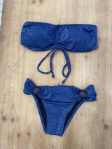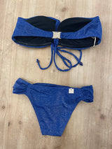 Tatiane De Freitas Etincelle Ruched Bandeau Bikini Set with Tab Bottoms in Navy