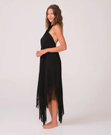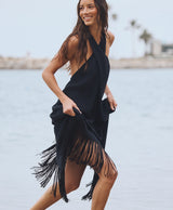 Embrace bohemian elegance with the Kate Fringe Dress, featuring a flowing handkerchief hem that’s perfect for beachside soirées and resort wear. The unique criss-cross tie neckline beautifully exposes the shoulders and back, while fringe detailing adds a free-spirited, boho-chic touch. This effortlessly charming dress is the ultimate blend of sophistication and relaxed style for your beach or vacation wardrobe.
