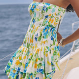 Featuring romantic tiered fabric, the Marie dress offers a sweet take on vacation-wear. The flattering ruched front and form fitting fabric hug your curves in all the right places. It’s a short whimsical number to wear on a sensational getaway.
