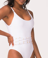 PQ Swim Beaded Brynn One Piece White
