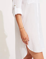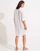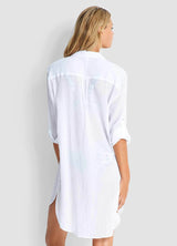 A long and lightweight classic button through cover up by Seafolly. The Crinkle Twill Beach Shirt in White is a holiday essential to cover over any swim attire.