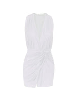 The ViX Karina Mini Cover Up is a sleeveless mini dress featuring a plunging V-neckline and a side knot detail at the waist, with ruching throughout. Made from smooth lycra fabric, it offers effortless all-day wear.
