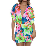 Luli Fama Playera V Neck Ruffle Dress in Tropical Illusions