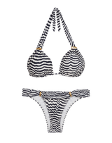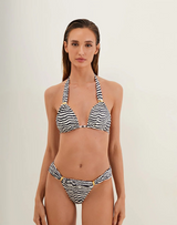 Achieve a contemporary, elegant, and luxurious swimwear look with the Bia Tube Bikini, a classic triangle cut silhouette. This all-flattering bikini is shaped and embellished with 24k gold-plated sliding tubes which come together to give you a stunning fashionable, never dated look. Slide the gold tubes to your liking and adjust the ties to the back of the neck to get the perfect form-flattering fit. The matching foldover bikini bottom provides you with a curve-hugging fit making it the ideal silhouette to show off.