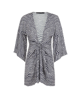 The ViX Perola Knot Short Cover Up is a stylish and effortless layering piece made from lightweight cotton fabric. It features 3/4 sleeves, a deep neckline, and a knot accent at the front, perfect for those quick, chic cover-up moments.