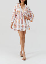 The Billi Shirt in Sunset Stripe is a chic summer staple. Crafted from a lightweight cotton blend, it boasts a relaxed oversized fit. A flattering v-neckline and front patch pockets add to its appeal, while the sun-soaked stripes capture effortless holiday style. Perfect for layering over swimwear or styled with the matching Barbara Skirt, it’s an easy way to achieve summer elegance.