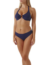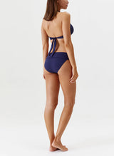 Opt for an Odabash icon for your next getaway with the Brussels Bikini. In a timeless shade of Navy this effortlessly sophisticated style is cut from premium swimwear fabric and gives you SPF 50+ protection. Designed with support in mind, the top is underwired and tie fastenings so you can achieve the perfect fit. A gold tone ring at the centre of the bust adds to its understated glamour, while matching hipster bottoms give you full coverage thanks to a folded panel.