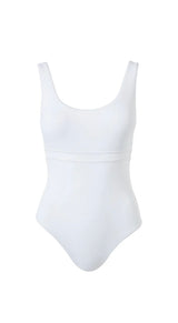 Those who favour minimalist design will love the Kos Swimsuit. This timeless shape is perfect for more active days on the beach. Over the shoulder straps and a panel under the bust offer support and keep you comfortable and secure while swimming. A clean silhouette with ribbed detail beneath the bust keeps the look simple.