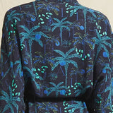 The Exotic Yves print features palm trees and serpents with Ôsalé lettering in beautiful Navy and blue tones with turquoise highlights.
