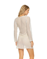 Guria Beachwear Lattice Ring V Neck Tunic Cover Up Off White