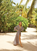 The Maja Kaftan in striking Chain print is the ultimate statement of effortless luxury. This open-front, long kaftan features elegant tie waist details that cinch to flatter, while fluted sleeves add a touch of fluid femininity and movement. Crafted for relaxed sophistication, it’s ideal for layering over swimwear or styled as a breezy cover-up for sunset cocktails.