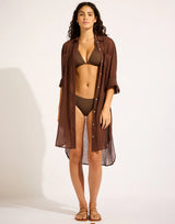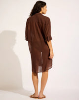 Seafolly Crinkle Twill Beach Shirt in Dark Chocolate