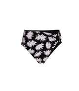 This bandeau bikini top in a stretch Lycra fabric features a ring in the center with an optional halter neck strap. This beautiful black and white bandeau comes with a matching mid rise bottom with a side ring. Model is wearing a size small. Runs true to size.